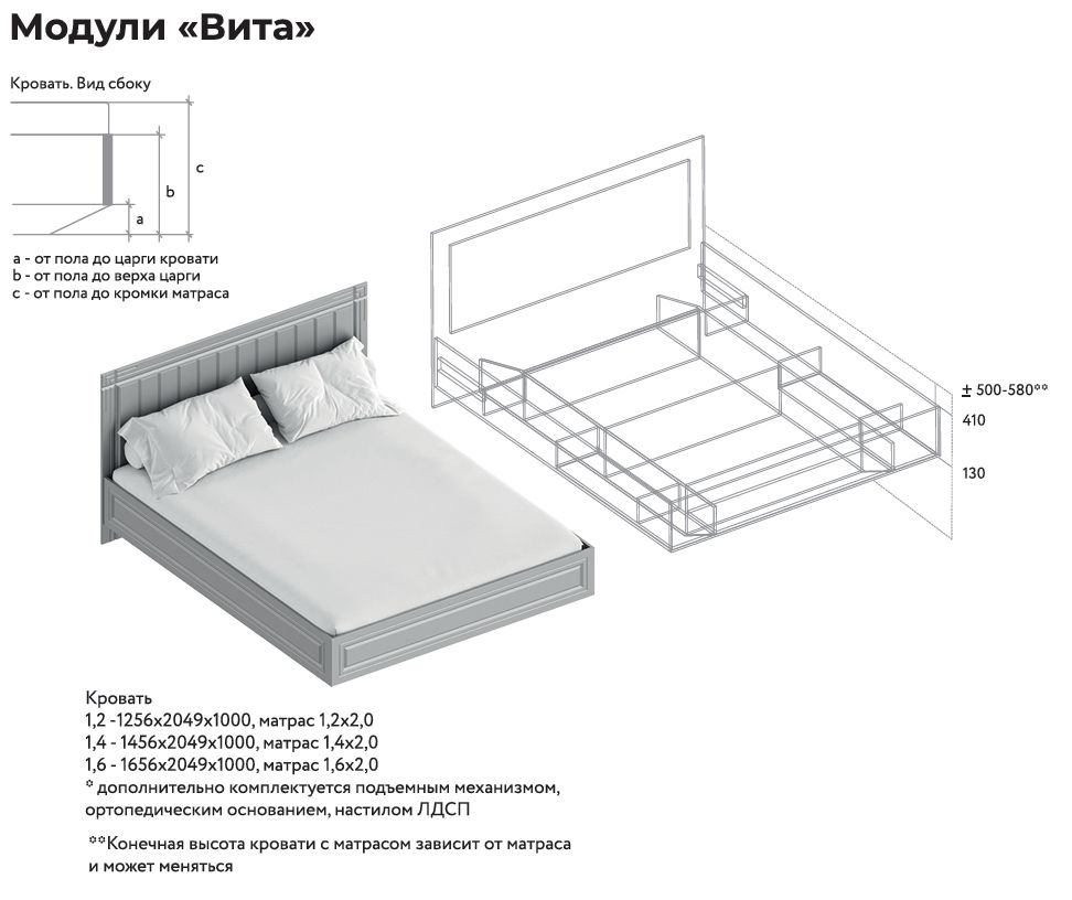 Вита Кровать 1,6 1656х2049х1000 МДФ (Велес)