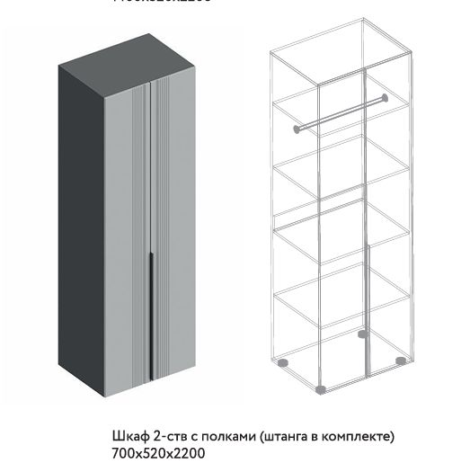 Вита Шкаф 2-ств с полками (штанга в комплекте) 700х520х2200 МДФ (Велес) ()
