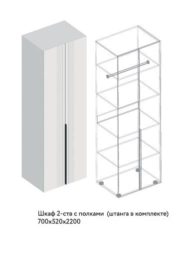 Вита Шкаф 2-ств с полками (штанга в комплекте) 700х520х2200 МДФ (Велес) ()