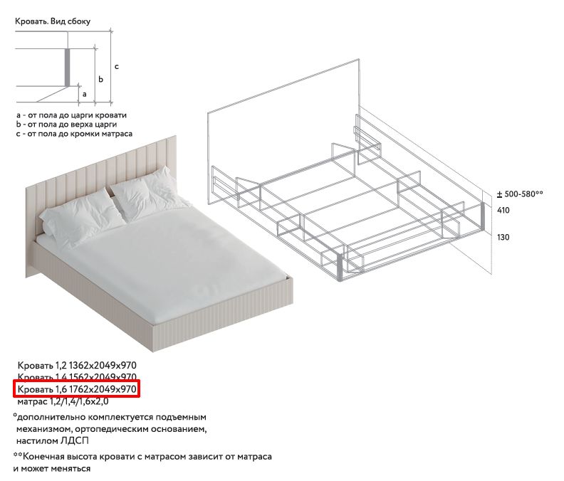 Тефия Кровать 1,6 1762х2049х970 МДФ (Велес)