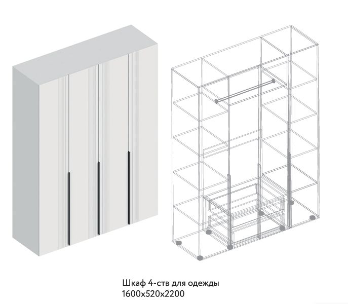 Вита Шкаф 4-ств для одежды 1600х520х2200 МДФ (Велес)